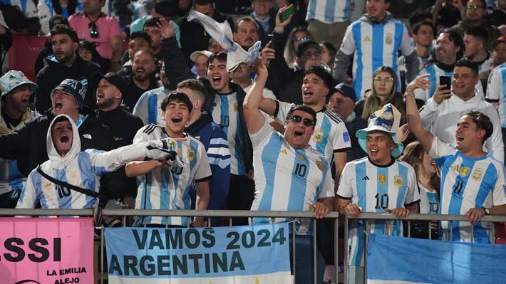 Hinchas argentinos en las eliminatorias de la Copa del Mundo en el Estadio Nacional en junio de 2025.