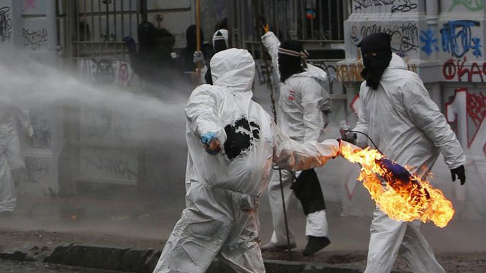 Instituto Nacional encapuchados se enfrentaron con bombas molotov contra personal de Carabineros y provocaron daños al interior del colegio, mientras que hubo protestas afuera del