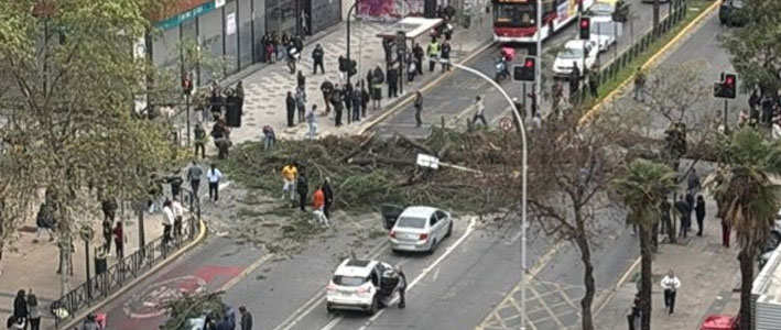 Una serie de incidentes se registran esta jornada producto del fuerte viento en la capital. Entre estos hechos, caídas de árboles han provocado que tanto los transeúntes como los automovilistas deban modificar sus recorridos.