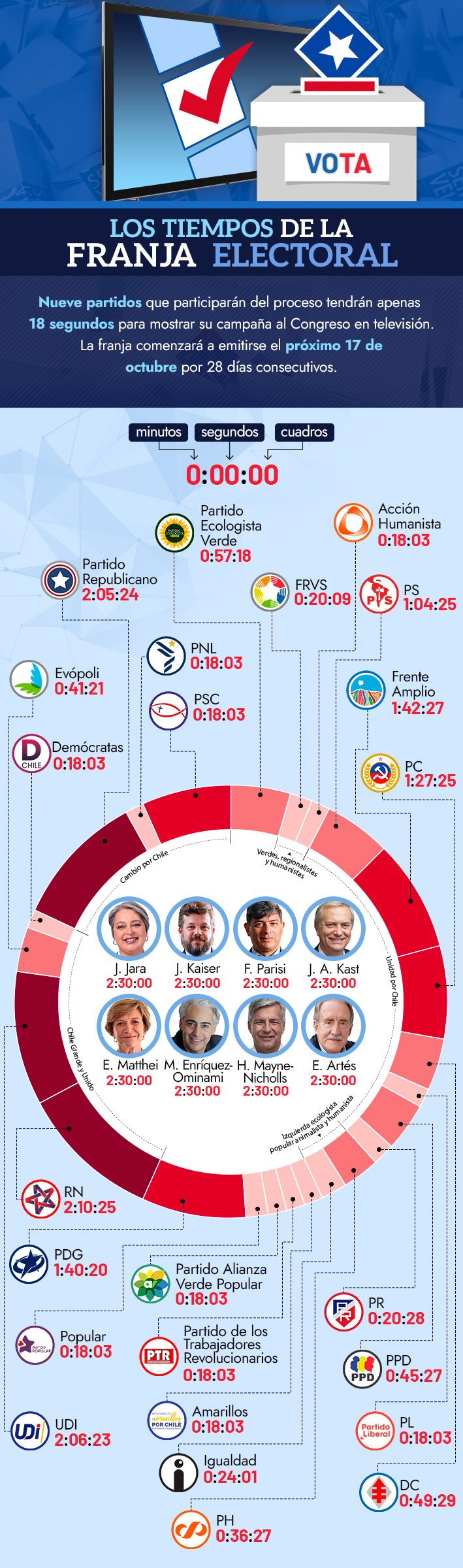 Los tiempos de la franja televisiva: Con cuánto espacio contará cada partido y los ocho candidatos presidenciales