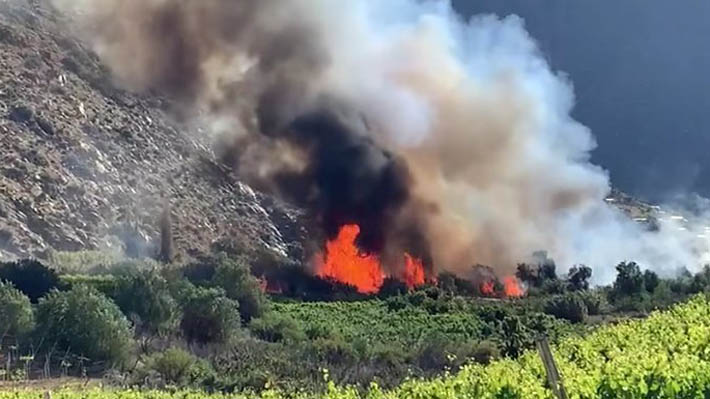 El fuego está cerca de sectores poblados. En consecuencia, Senapred emitió una orden de evacuación para todos los habitantes del sector Chaguaral Bajo.