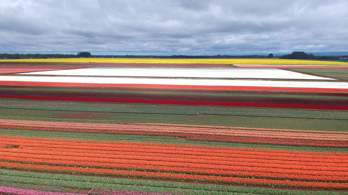 En la Región de Los Ríos se emplazan 120 hectáreas donde son plantadas cerca de 50 especies distintas de tulipanes, los que en unos días serán cosechados y enviados a distintas partes del mundo. Chile posee una estrecha colaboración con socios neerlandeses y es clave para la producción de esta planta a contraestación del Hemisferio Norte. Jorge Buschmann, director de Southern Bulbs y Southern Tulips, dice que, tras un proceso lento, han logrado encontrar los clientes y dar con el mercado esencial para convertirse hoy en la única empresa en Chile que produce tulipanes. En ese contexto, la embajadora de Países Bajos, Elke Merks-Scaapveld, encabezó las celebraciones por los 200 años de relaciones bilaterales entre ambos países y que se llevó a cabo en Los Ríos. Allí visitó el vivero Valdivia Lilies, donde se encargan de producir 80 hectáreas de liliums de alta calidad. En el planeta sólo se producen 4.900 hectáreas de esta flor. En el Hemisferio Sur, Chile es el principal actor con plantaciones que suman 400 hectáreas, seguido por Nueva Zelanda, con 200. Los principales destinos de los lirios nacionales son China y Países Bajos, con un 22,9% y 21,3%, respectivamente. "Tenemos características climáticas bastante importantes que permiten la cosecha, primaveras que tienen temperaturas que favorecen el desarrollo y crecimiento de nuestras plantas", dice Ricardo Cochechillo, encargado de Comercio Exterior y Certificación Fitosanitaria de Valdivias Lilies.