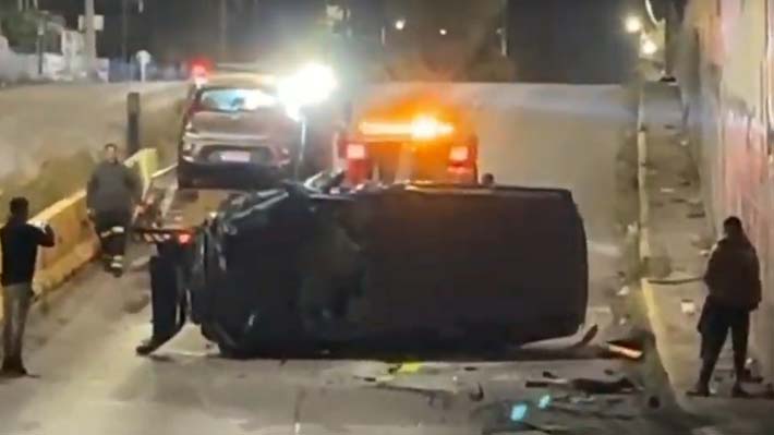 El jefe policial agregó que "producto de esta colisión, uno de los dos vehículos cae al paso bajo nivel que se encuentra ubicado en Avenida Departamental". Este último transporte es un auto tipo station wagon.