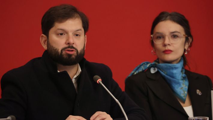 Presidente Gabriel Boric y vocera Camila Vallejo.