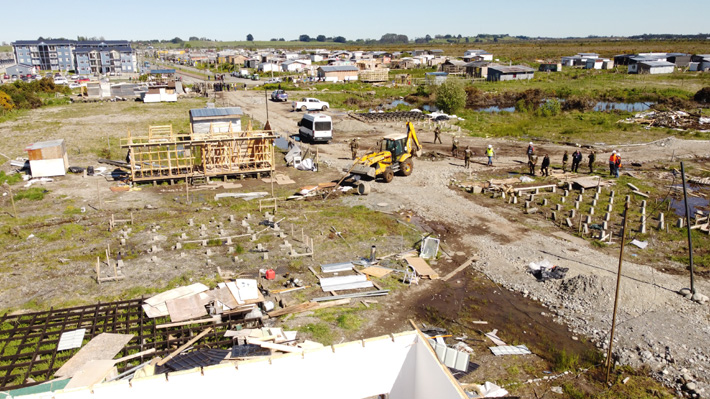 de 24 casas instaladas en un terreno del Servicio de Vivienda y Urbanismo en el sector Alerce, en Puerto Montt, desde hace cuatro años. El operativo contó con el resguardo de Carabineros y el uso de maquinaria pesada. En la zona se fueron sumando ocupantes ilegales en terrenos colindantes de Bienes Nacionales y de un privado, donde ya sumaban 134 casas catastradas. La delegada presidencial de Los Lagos, Paulina Muñoz (PPD), indicó que desde enero, junto al Municipio de Puerto Montt, levantaron