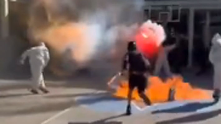 Un grupo de jóvenes, vestidos con overoles blancos y encapuchados, prendieron fuego a barricadas en el patio del establecimiento.