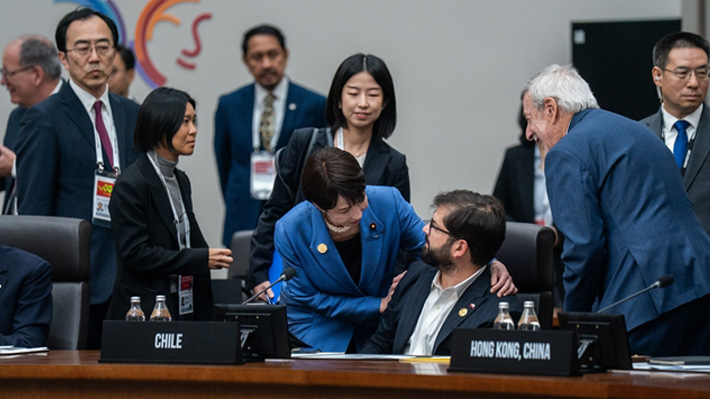 En el marco de la sesión de cierre del Foro Económico Asia Pacífico APEC, al Presidente Gabriel Boric se le vio en un particular acercamiento con la Primera Ministra de Japón, Sanae Takaichi.