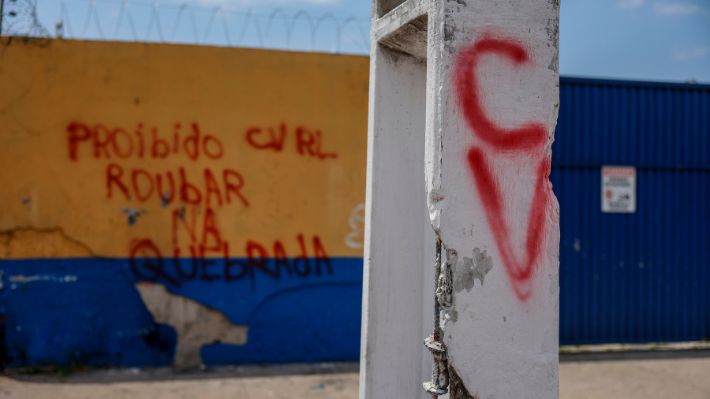 Con las iniciales CV el Comando Vermelho establece sus dominios en distintos barrios de Brasil.