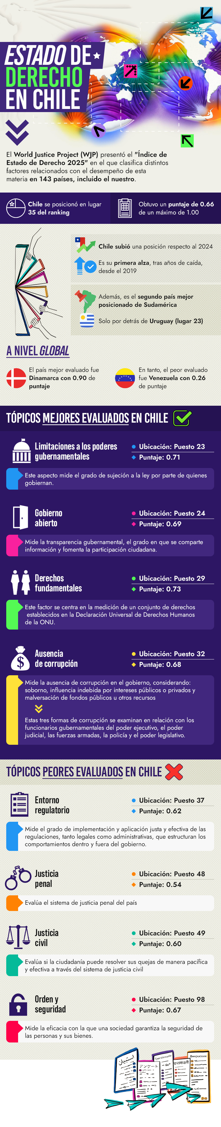 Chile mejora levemente en Índice de Estado de Derecho: Es segundo en la región y 35 en el mundo