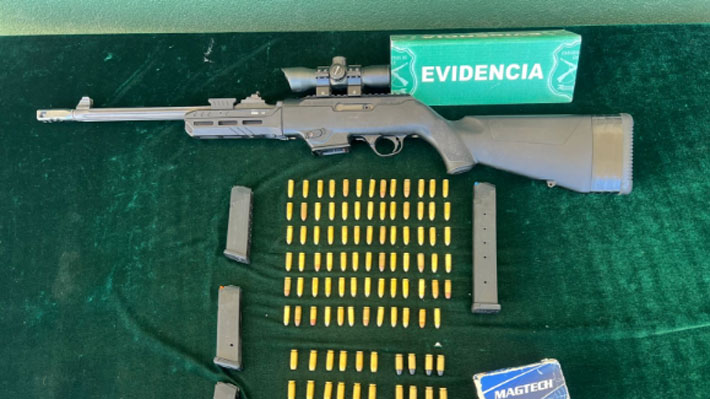 En el procedimiento se incautó un rifle número de serie borrado y mira telescópica, dos chalecos balísticos color negro sin marca, además de diverso material balístico y tecnológico utilizado para clonar llaves de automóviles.