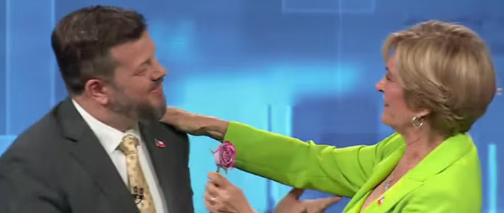 Casi al final del debate Anatel del pasado lunes, ocurrió el sorpresivo saludo de cumpleaños de parte de Kaiser a Matthei, que incluyó una rosa y un intercambio de palabras en alemán.