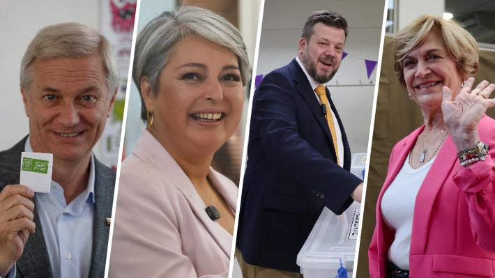 José Antonio Kast, Jeannette Jara, Johannes Kaiser y Evelyn Matthei.