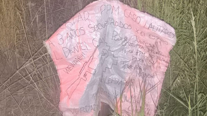 e la pancarta contenía consignas sobre presos mapuche y críticas al Poder Judicial.