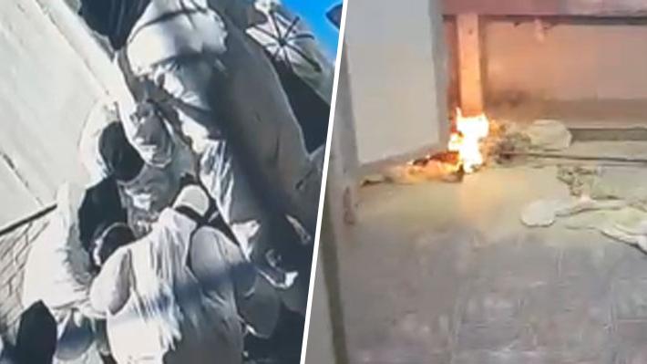 Con esto, ingresaron 9 personas con overoles blancos desde el exterior. En total eran 13 overoles blancos, los que procedieron a tirar 2 bombas molotov al interior de la inspectoría del colegio y quebraron un vidrio. Rayaron el exterior de esa sala con la consigna "No Más Aula Segura".