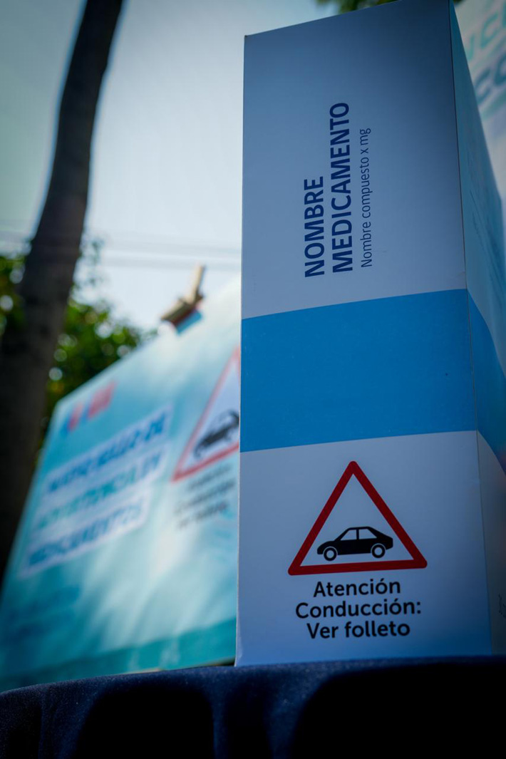 La simbología del sello, que no prohíbe la conducción, sino que advierte, es un pictograma (automóvil dentro de un triángulo rojo) que se ubicará en la caja del medicamento, el cual aplicará no solo a fármacos psiquiátricos, sino también, medicamentos de uso común para alergias, resfríos, dolor, migrañas, e incluso la insulina.