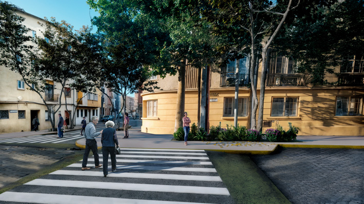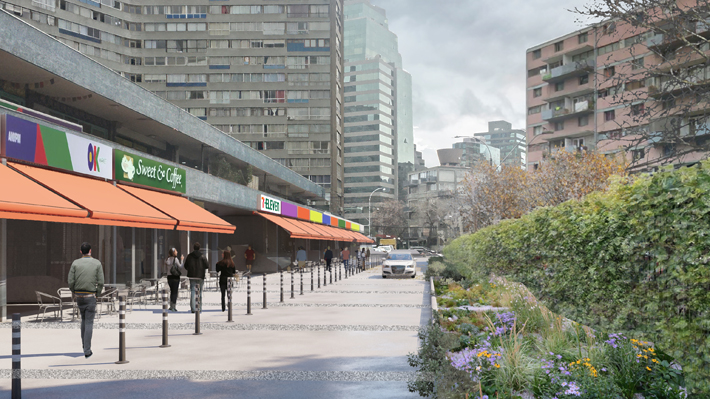 También, se incorporará infraestructura verde y paisajismo sustentable, promoviendo la biodiversidad y la gestión del agua. Se construirá un nuevo atravieso peatonal semaforizado en calle Santa Magdalena que formalice este cruce irregular y generé conectividad, hacia los paseos peatonales Santa Magdalena y las Palmas.
