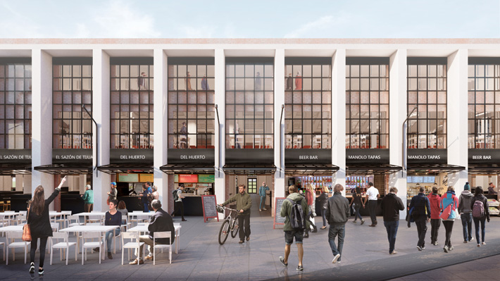 Se intervendrá una superficie de 11.312,88 m2, en dos niveles, donde se instalarán locales característicos de barrio como florerías, pastelerías, heladerías y panaderías. Además, se incorpora una plaza interior abierta que alberga diferentes programas como Mercado de Abastos, ferias, exposiciones, entre otros, a partir de una cuidadosa selección y curatoría de los productos locales.