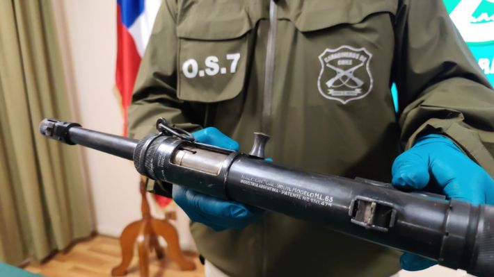 En ese contexto, los carabineros encontraron cinco subametralladoras calibre 9 milímetros, una de ellas con el grabado de "Policía Federal Argentina" y las otras igualmente indicando en su estructura el mismo país de procedencia, 15 cargadores y 50 cartuchos de calibre 11.25x23, esta última conocida como "caza elefantes" por su alto nivel de fuego y daño.