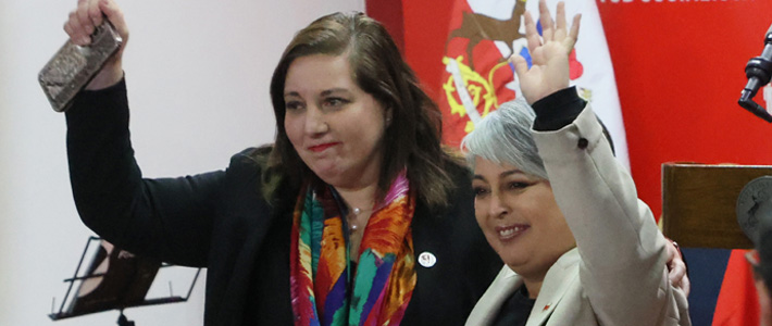 Jeannette Jara y su jefa de campaña, la presidenta del PS, Paulina Vodanovic.
