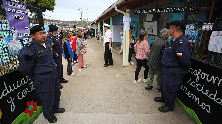 aviso de falsa bomba que se registró en la Escuela Básica Eleuterio Ramírez de la comuna de Valparaíso y que obligó al desalojo del recinto. Tras una revisión por parte de los efectivos del GOPE de Carabineros, se descartó la presencia de un artefacto explosivo y se retomó el proceso.