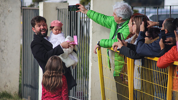 Gabriel Boric, emitió su voto temprano en Punta Arenas. El Mandatario llegó caminando al Liceo Industrial Armando Quezada Acharán con su hija Violeta en brazos y acompañado de su pareja, Paula Carrasco.
