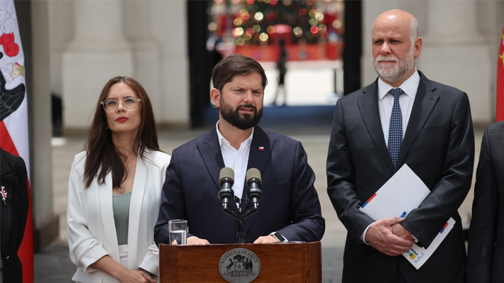 El Presidente Gabriel Boric, acompañado de sus ministros de Interior, Álvaro Elizalde; Hacienda, Nicolás Grau; Segegob, Camila Vallejo y Segpres, Macarena Lobos, entregó una declaración de prensa en La Moneda, valorando la reunión de trabajo que sostuvo esta mañana con el Presidente electo, José Antonio Kast.
