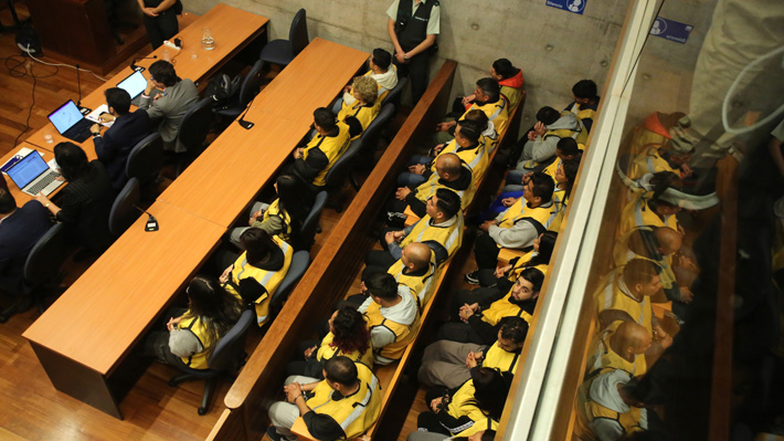 La audiencia, a cargo del juez Francisco Ramos, se está realizando de manera presencial para la mayoría de los imputados, quienes fueron trasladados en buses al Centro de Justicia de Santiago.