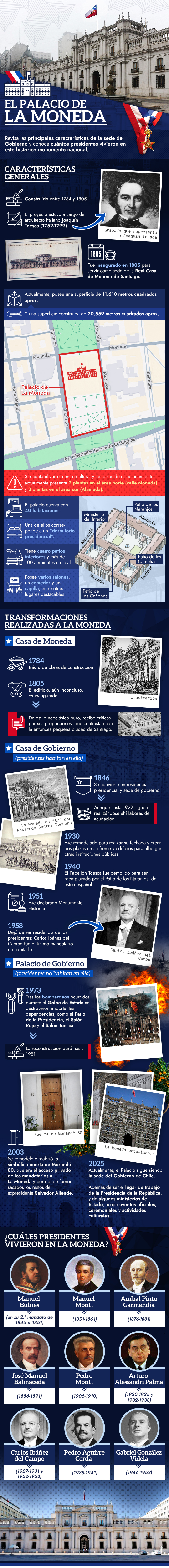 Diseño de Infografía: Michel Leiva M., Emol. | Contenido: Vladimir Núñez, Emol | Fuentes: Memoria Chilena / Ministerio de Bienes Nacionales / Santiago Turismo / Archivo Michelle Bachelet / El Mercurio
