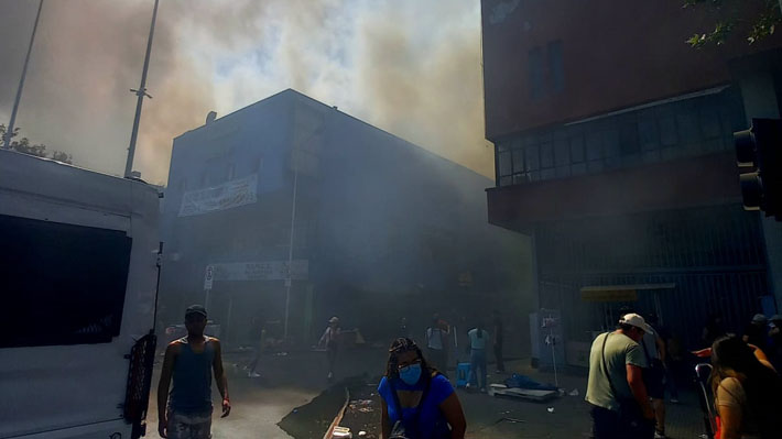El fuego se originó pasada las 16:00 horas en una de las galerías que funcionaba con varios locales comerciales y patio de comidas en calle Maipú con Alameda, comuna de Estación Central.