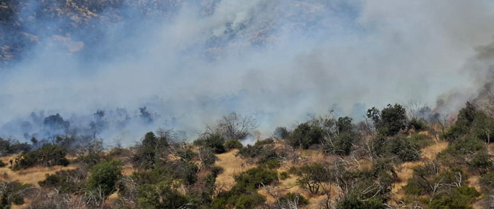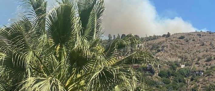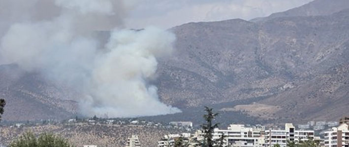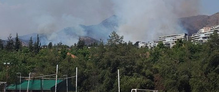 Bomberos declaró esta tarde un incendio forestal en San Carlos de Apoquindo y Camino Las Flores, en la comuna de Las Condes, Región Metropolitana.