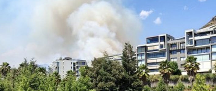 Bomberos realiza trabajos de protección de edificaciones tanto en Monseñor Álvaro del Portillo como en Avenida Plaza. Las personas que estaban en Parque Cordillera tuvieron que ser evacuadas.