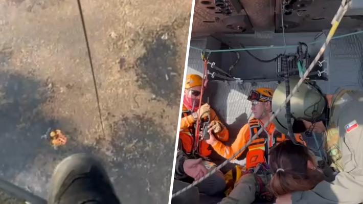 Es así que, a eso de las 19:00 horas, "se logró divisar a una mujer quien solicitaba ayuda entre el fuego, ante lo cual, y debido a una maniobra de alta performance, se pudo descender a uno de los rescatistas por la grúa de rescate", indicó el coronel.