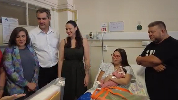 La lactante fue visitada en el centro hospitalario por la ministra (s) de Salud, Andrea Albagli, y la ministra (s) de Desarrollo Social, Paula Poblete, además del subsecretario de Redes Asistenciales, Bernardo Martorell, quienes hicieron entrega del ajuar del Programa de Apoyo al Recién Nacido (PARN).