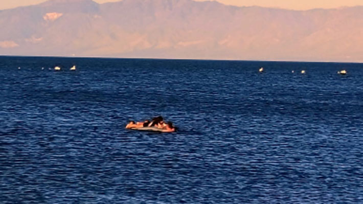 colchón inflable, el cual comenzó a ser arrastrado mar adentro por la corriente.