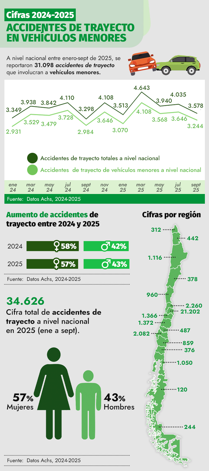 Isabel Contrucci, directora de Estudios de la Achs, afirmó que "los accidentes de trayecto son una de las expresiones de la accidentabilidad laboral en Chile. Contar con información detallada sobre cómo, cuándo y a quiénes afectan estos siniestros permite comprender mejor los factores de riesgo asociados a la movilidad cotidiana y fortalecer las estrategias preventivas, contribuyendo a reducir la ocurrencia de accidentes en los desplazamientos hacia y desde el trabajo".