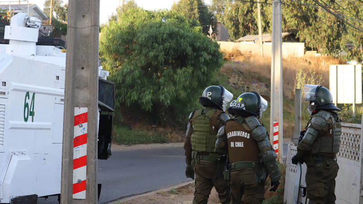 La general Patricia Vásquez, jefa V Zona de Carabineros, señaló que "durante estos últimos días ha existido manifestaciones por parte de los pobladores a través de barricadas incendiarias (...) Ahora está operando en este momento Control de Orden Público" con carros lanzaaguas para dispersar a los manifestantes y apagar las barricadas.