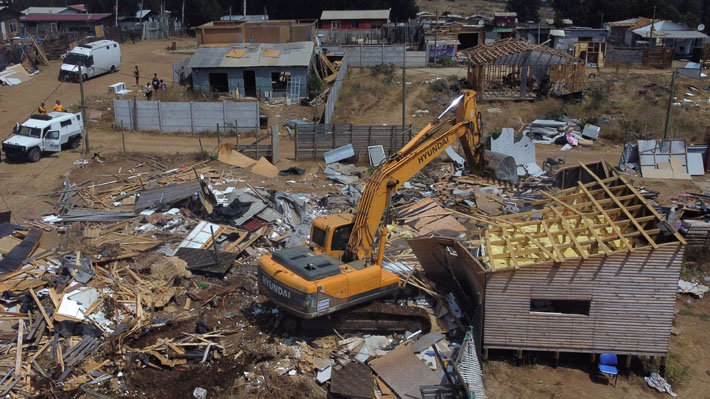 "En el día de ayer, en la tarde, ya estuvimos haciendo sobrevuelos en esa zona y ya había algunas viviendas del orden de 8 o 10 que habían sido ya desarmadas por sus propios ocupantes, y hoy día finalmente se tomó posesión del terreno y con eso pueden entrar a la maquinaria para ir desarmando el resto", detalló a modo de balance.