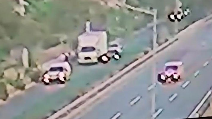 Según los antecedentes, momentos antes seis individuos en tres vehículos habían interceptado un camión en avenida Américo Vespucio, en el enlace con la Autopista Costanera Norte.