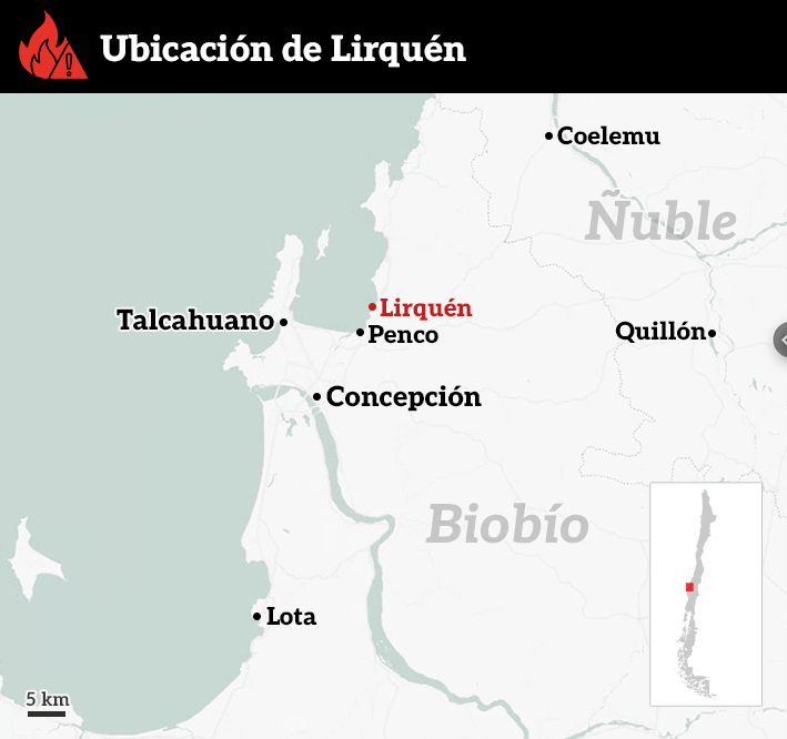 Lirquén, localidad costera de la comuna de Penco, en la Región del Biobío, se transformó en uno de los principales focos de la emergencia provocada por los incendios forestales que han afectado a la zona centro-sur del país.