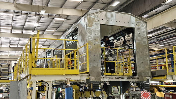 La primera de las nuevas máquinas que llegarán a Chile para la futura Línea 7 del Metro de Santiago ya está lista en San Pablo, Brasil. Se encuentra a la espera de ser sometida a distintas pruebas antes de su traslado vía terrestre a Santiago. El proceso para producir estos trenes, de 102 metros de longitud y capacidad para más de 1.200 pasajeros, es extenso: luego de la firma que Metro realizó con la empresa francesa Alstom en 2022, comenzó una etapa de diseño e ingeniería que se extendió por cerca de dos años. Durante ese periodo se realizaron decena de reuniones entre ambas partes, en las que se acordaron requisitos técnicos y el desarrollo de los primeros planos. "En estos trenes se solicitó poner puertos USB-C, cámaras de seguridad en su interior, un diseño curvo de los pasamanos en su interior, un diseño curvo de los pasamanos, muchos detalles en las pantallas. Allí nos juntamos con el cliente y se discuten todos esos detalles, uno a uno", comenta Waléria Haga, directora de proyectos de Alstom para la Línea 7. Luego, la empresa fabrica el primero de los trenes y presenta una maqueta al cliente, algo que ocurrió en marzo de 2024 con Metro. Luego de verificar la maqueta, sigue una fase de recolección de suministros, en la que la empresa localiza a los proveedores y se adquieren los materiales. "Compramos desde las bobinas de acero inoxidable hasta el cableado, y aquí hacemos desde la materia primera hasta la producción final; las piezas, en el caso del acero inoxidable, recortamos, hacemos el pliegue, la soldadura; todo es hecho acá en nuestro taller", señaló Thiago Torres, director general de la planta Alstom en Brasil.