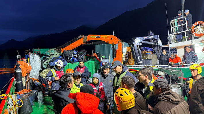 "El operativo de búsqueda continúa en desarrollo, sin embargo, los trabajos de buceo se retomarán con las primeras luces del día de mañana, con el fin de asegurar la integridad del personal de diversos organismos colaboradores en la emergencia, con el objetivo de dar con el paradero del resto de los tripulantes desaparecidos", señaló la Gobernación Marítima de Puerto Montt.