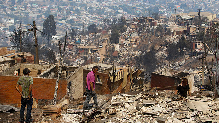 Destrucción del incendio en la Región de Valparaíso