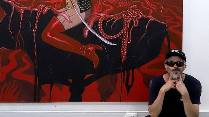 Entre las piezas figuraba el acrílico “Máquina de Guerra”, del pintor Luis Almendra, una obra de gran formato que representa de manera alegórica a Camila Polizzi, excandidata a alcaldesa de Concepción imputada por fraude al fisco.