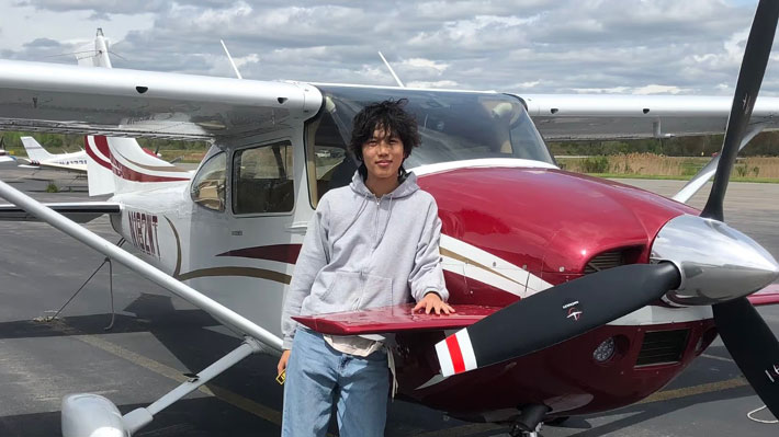 El influencer Ethan Guo junto a su aeronave denominada como "CESSNA 182Q Skylane".