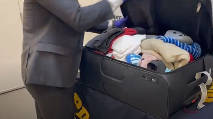 En la revisión, conforme la oficial se detectó que "una de sus maletas estaba modificada estructuralmente, escondiendo un doble fondo que ocultaba 5 kilos, 400 gramos de la sustancia que al ser sometida a prueba experimentar arrojó resultado positivo a la presencia de clorhidrato de cocaína".