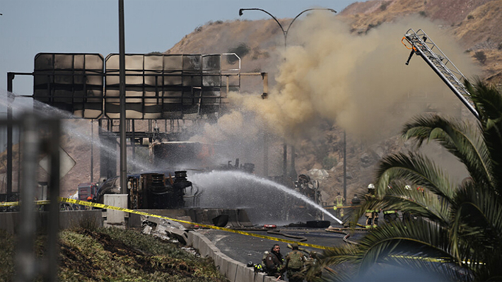 Renca, luego de la fuerte explosión provocada por un camión de gas licuado que se volcó en la autopista General Velásquez.