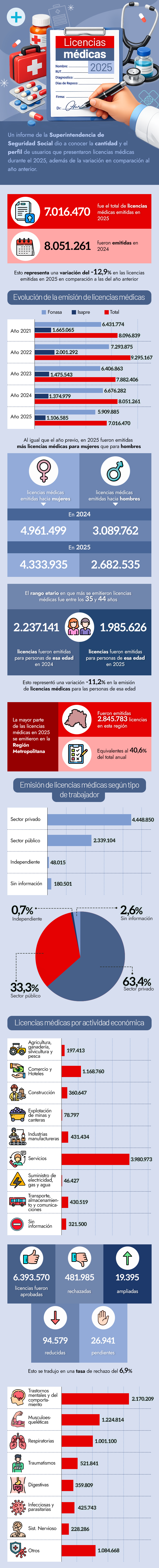 Más de 7 millones de licencias médicas fueron emitidas en 2025: 33,3% corresponden al sector público