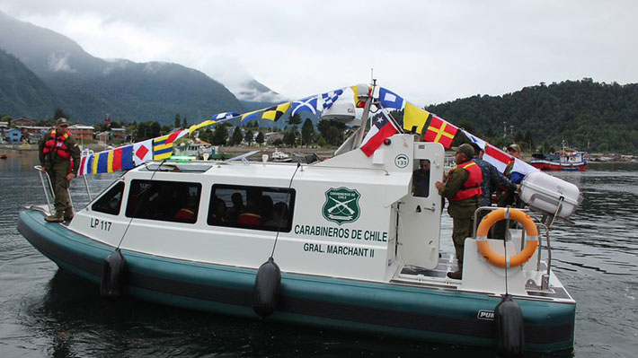 La lancha policial "General Marchant II" se sumó al trabajo de carabineros para reforzar la seguridad de la tenencia Puerto Cisnes, dependiente de la Segunda Comisaría Puerto Aysén.