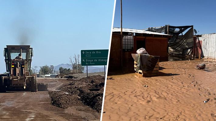 De acuerdo con el Diario de Atacama, se reportó ayer acumulación de agua en quebradas y flujo de barro en sectores de la Ruta C-17 en Diego de Almagro.