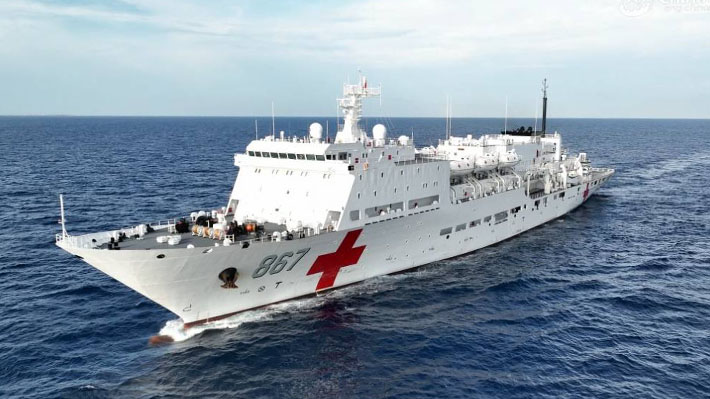 La tarde del miércoles el buque médico de la Armada del Ejército Popular de Liberación (EPL) de China,